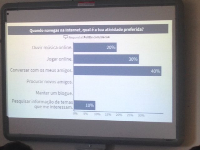 Os workshops, dinamizados durante todo o dia, transmitiram aos alunos recomendações importantes e desenvolveram a sua responsabilidade enquanto consumidores digitais. Os alunos responderam ainda a questionários com a ferramenta Poll Everywhere, com recurso aos seus smartphones, e revelaram-se muito participativos.